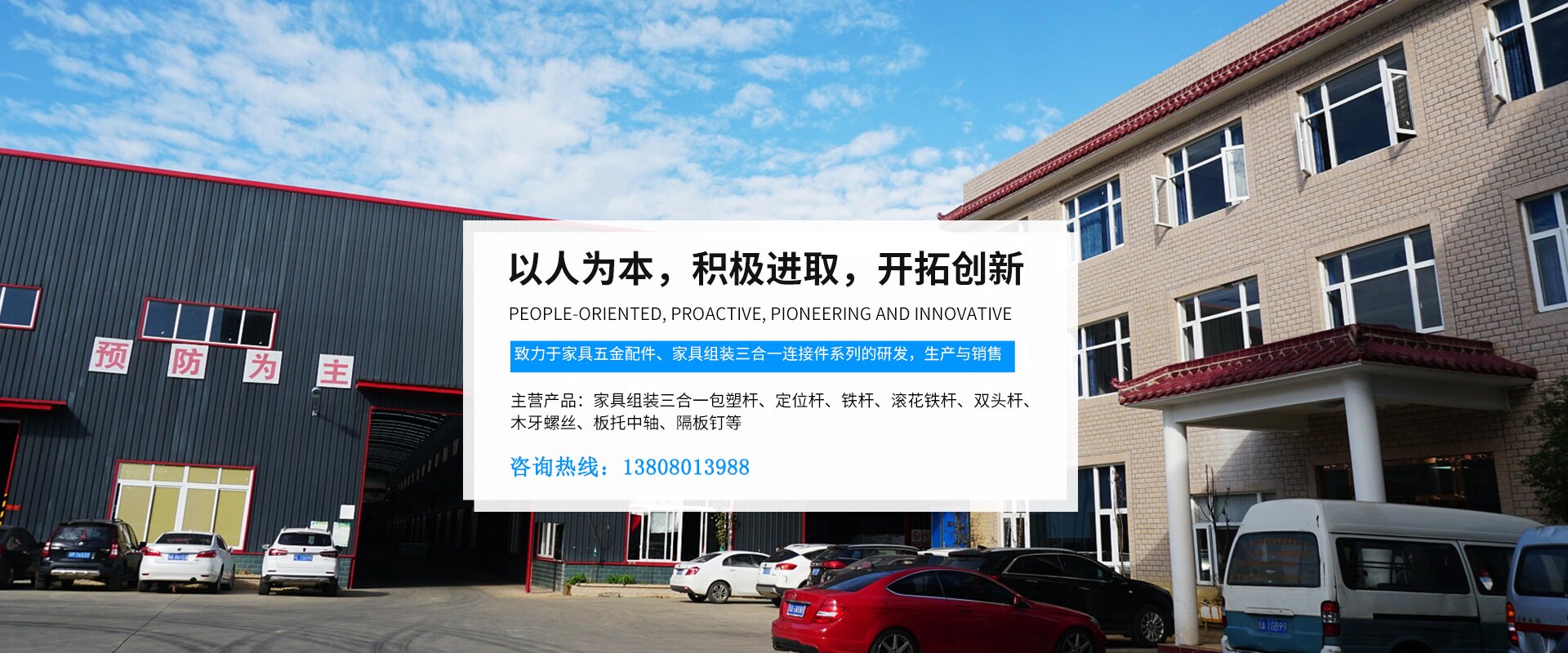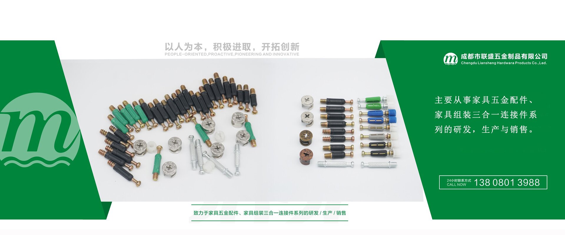 成都市聯(lián)盛五金制品有限公司成立于2012年,現(xiàn)擁有廠房面積16000平方米,主要從事家具五金配件、家具組裝三合一連接件系列的研發(fā),生產(chǎn)與銷售。公司目前主營產(chǎn)品:家具組裝三合一包塑桿、定位桿、鐵桿、滾花鐵桿、雙頭桿、木牙螺絲、板托中軸、隔板釘?shù)取?br> 公司現(xiàn)在具有雄厚的技術(shù)實力,從模具設(shè)計、模具制作到產(chǎn)品生產(chǎn)都有強大的技術(shù)團(tuán)隊和管理團(tuán)隊,擁有家具五金配件從業(yè)十年以上的技術(shù)人員與管理人員多名,另有多年五金配件生產(chǎn)工作經(jīng)驗的員工40余人,都有著豐富的生產(chǎn)經(jīng)驗和敬業(yè)精神。公司現(xiàn)擁有現(xiàn)代先進(jìn)的五金生產(chǎn)設(shè)備150余臺,并且公司正在全面推行ISO9001:2016國際質(zhì)量管理體系,力求生產(chǎn)高效、節(jié)能,制造出質(zhì)量穩(wěn)定、安全,令客戶滿意的高品質(zhì)產(chǎn)品。